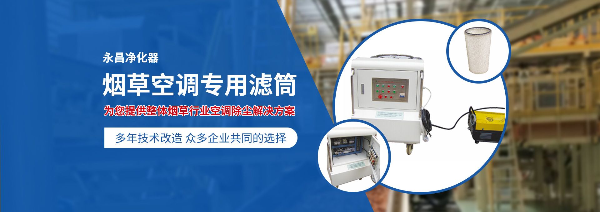 新鄉(xiāng)市永昌凈化器有限公司是生產(chǎn)煙草行業(yè)空調(diào)除塵專用濾筒的企業(yè)。注冊資金1000萬元。已通過ISO9001國際質(zhì)量管理體系認證。對產(chǎn)品有嚴格的管理制度和售后服務(wù)。我公司以誠信、負責、守信譽、重質(zhì)量的精神所生產(chǎn)的產(chǎn)品,近幾年來在煙草行業(yè)受到廣泛應(yīng)用,并受到用戶的一致好評。 從一九九四年以來為煙廠的空調(diào)設(shè)備服務(wù)。十幾年來,我們不斷走出去請進來學習新技術(shù)。定期到用戶那里咨詢情況:互相交流,認真聽取寶貴意見,不斷提高產(chǎn)品質(zhì)量。從經(jīng)濟和安全,方便的角度出發(fā),根據(jù)煙廠濕度大的生產(chǎn)環(huán)境和濾筒收集到的含酸堿、氧化劑的粉塵。在空調(diào)箱工作狀態(tài)下我們頂著巨大的風壓危險在箱內(nèi)停留了幾分鐘,認真查看濾筒工作情況,發(fā)現(xiàn)濾筒有并死狀態(tài),造成濾筒不過濾、不過風、壓差高的現(xiàn)象。經(jīng)幾十次試驗分析,在標本兼治的原則下,有針對性的解決了這一問題?! ∥夜踞槍煆S制絲、卷接包、混絲間、儲絲房、冷卻床、梗膨化等不同的生產(chǎn)環(huán)境,